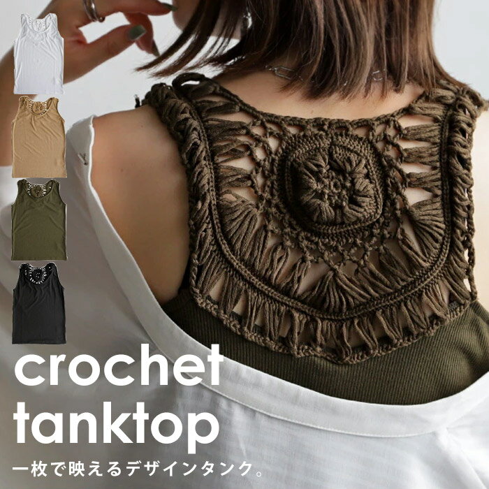 【期間限定バーゲン開催 ※返品不可】キャミソール キャミ タンク タンクトップ クロシェ編み リブ ノースリーブ インナー 肌着 オールシーズン 重ね着 レイヤード ベージュ おしゃれ レディース 大人 誕生日 プレゼント AminaCollection ◎メール便可!