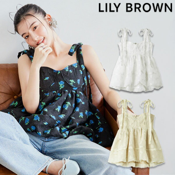 【新作10%OFF】【即納】 リリーブラウン LILY BROWN トップス 25春夏 シアージャガードペプラムトップス キャミソール ミドル丈 ペプラム リボン lwft251074