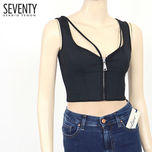 セブンティ(SEVENTY)レディース キャミソール ブラック系 ジップアップ イタリア製 (サイズ/S)*se0171