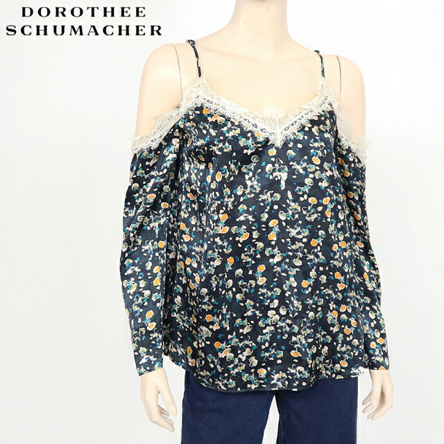 ドロシー・シューマッハ(DOROTHEE SCHUMACHER)レディース キャミソール ネイビー系 シルク100% レース使い (サイズ/1)*se0042