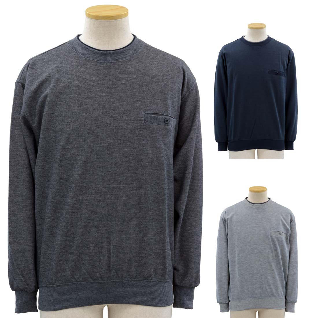 トレーナー 丸首 シニアファッション メンズ 80代 春 夏 涼しい おしゃれ かっこいい M L LL のびのび 高齢者 男性 60代 70代 90代 普段着 部屋着 ホームウェア 上品な服 おしゃれ着 外出着 紳士 用