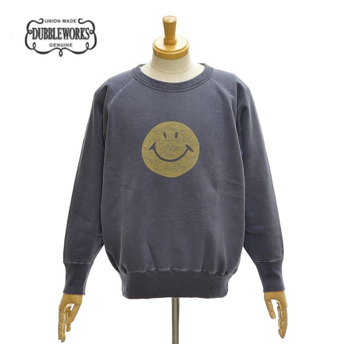 ダブルワークス 142-83003-06 "SMILE" ラフィシンカー裏毛 スウェットシャツ トレーナー メンズ DUBBLE WORKS FADED PRINTS SWEAT SHIRTS