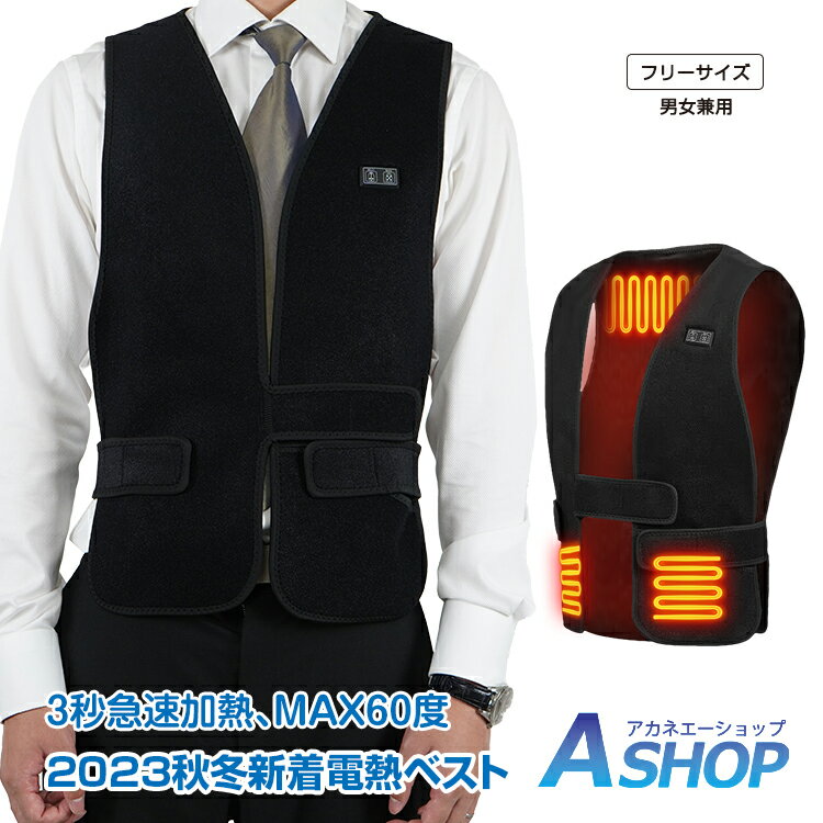 ★10%OFFクーポン★【送料無料】 電熱ベスト 加熱ベスト ヒーターベスト 防寒インナー 電気ベスト 急速発熱 3段階温度調節 最低40度 最高60度 超軽量 防寒着 防寒対策 フリーサイズ サイズ調節可能 男女兼用 全面裏起毛 丸洗いOK 節電対策 大きいサイズ sg116