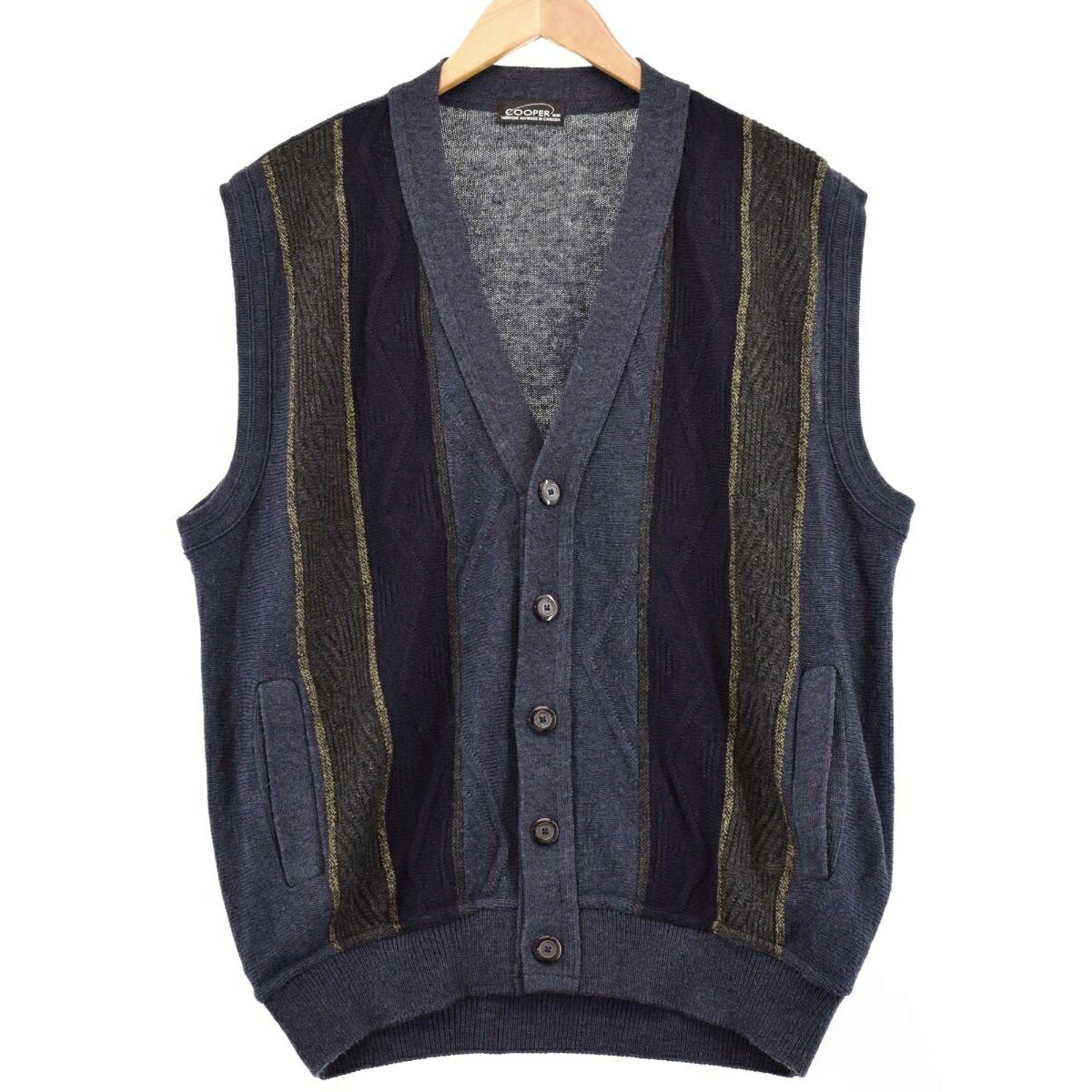 古着 COOPER ストライプ柄 前開き アクリルべスト カナダ製 メンズXL /eaa365011 【中古】 【231016】 ss2501_50