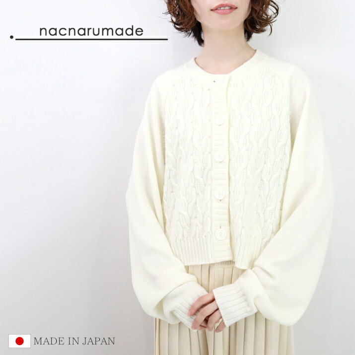 nacnarumade ウール100% ケーブル柄 ショートカーディガン 日本製 レディース ニット ショート丈 カーデ 羽織り 長袖 厚手 秋冬 冬 サステナブル アップサイクル 五泉ニット