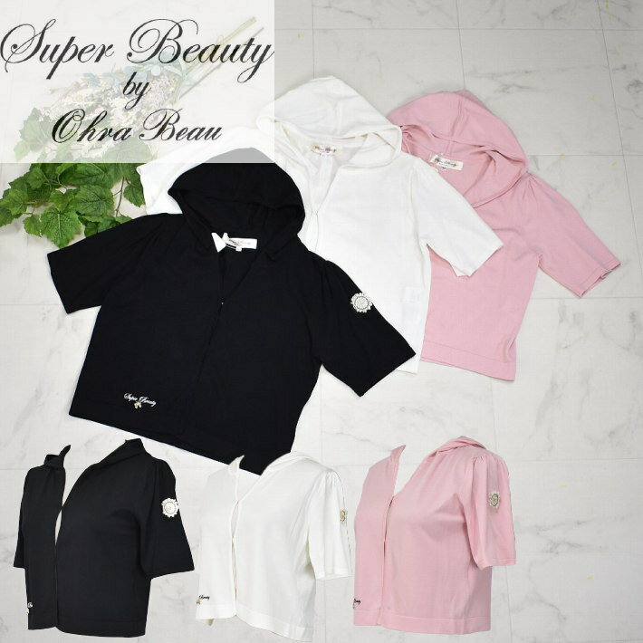 \全17%OFFクーポン可♪27日まで/スーパービューティー 5分袖 カーディガン ボレロ 2311023 レディース スプリング 刺繍 春/夏 エレガンス 【小】薔薇 フード付き リボン レース ジェイシー SuperBeauty デパートブランド ピンク/ホワイト/ブラック スパンコール