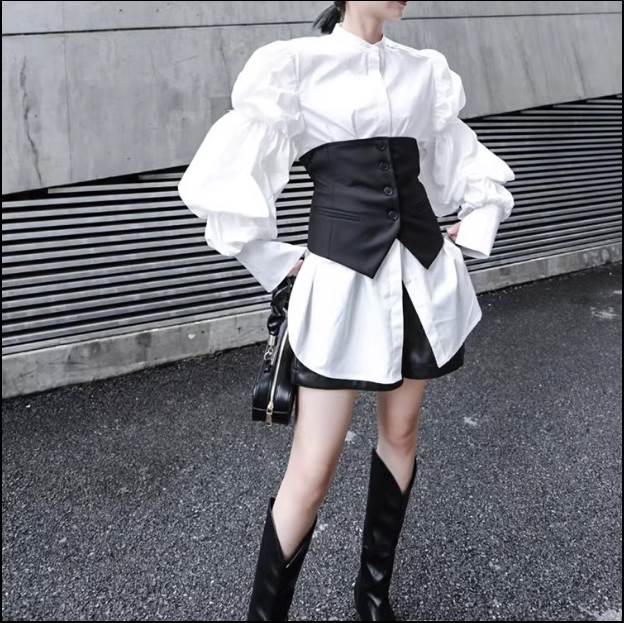 SMILE ORCHID 大き目襟スーツジレ スマイルオーキッド トップス ベスト・ジレ ホワイト ブラック【送料無料】