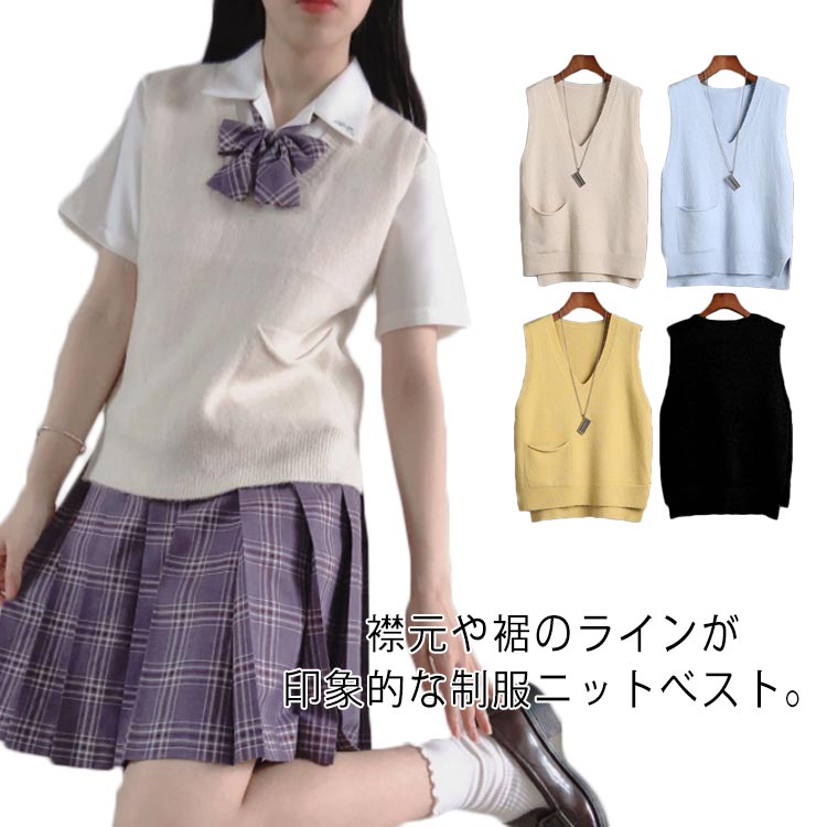 スクールベスト 制服 重ね着 夏用 着回し 定番 夏 通学 学生 春 秋 JK JC ニットベスト 中学 女子高生 おしゃれ レディース トップス 体型カバー ノースリーブ シンプル カジュアル 人気 かわいい 大きい 小さい レイヤード ベスト