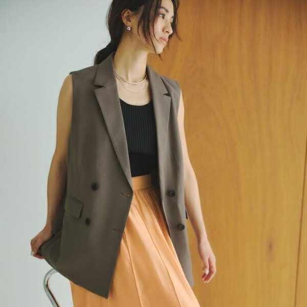 【洋服の青山】レディース ジレ 無地 ノースリーブ 春 夏 秋 冬 グレー 灰 ブラウン 茶 ビジネス オフィス 通勤 カジュアル ビジカジ フォーマル 女性 きれいめ 上品 シンプル ウォッシャブル 洗える ストレッチ 伸縮性 おしゃれ かわいい トップス ベスト セットアッップ可