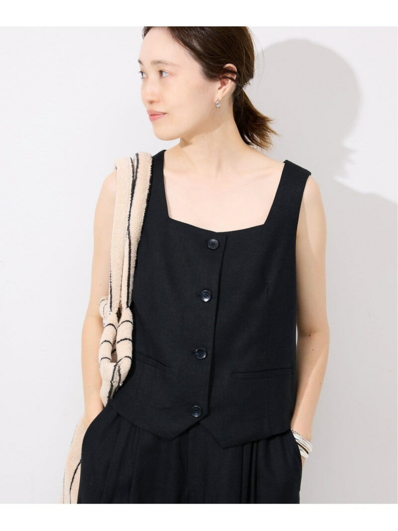 リネン混スクエアジレ SLOBE IENA スローブ イエナ トップス ベスト・ジレ ブラウン ブラック【送料無料】[Rakuten Fashion]