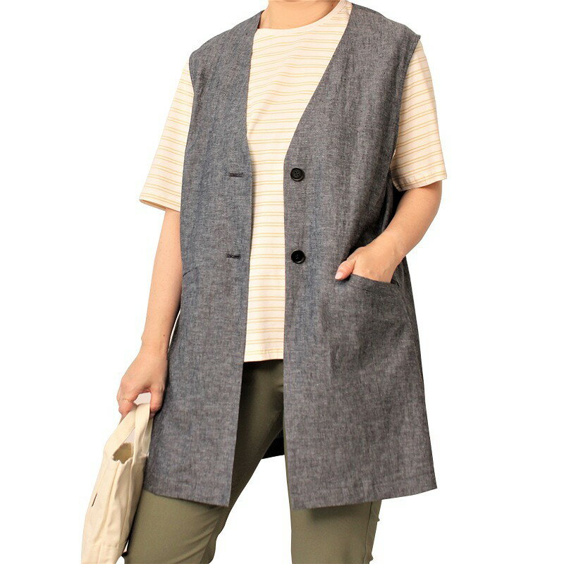 綿麻ジレ レディース 春夏 40代 ジレ ベスト サマーベスト ポケットある ロングジレ リネンベスト ノースリーブ コットンリネン トレンチベスト スーツベスト 無地 ジレンチ トップス ロングベスト 上品 春 夏 秋 大きいサイズ ゆったり 大人 OL 通勤 30代 40代 送料無料