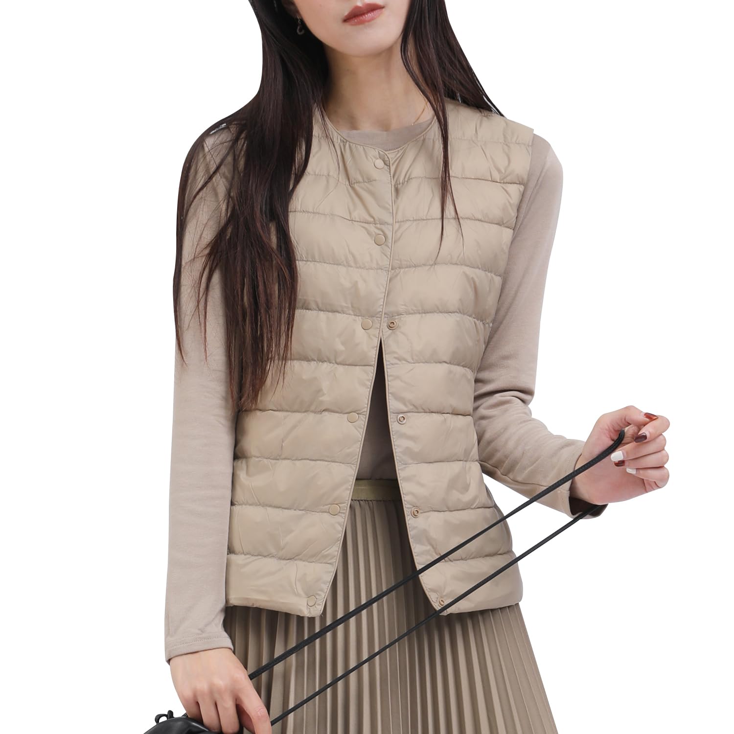 ダウンベスト レディース Vネック 丸首 2WAY襟デザイン ウルトラライト インナーダウンベスト 軽量 防風 保温 防寒 春秋冬 収納袋付き