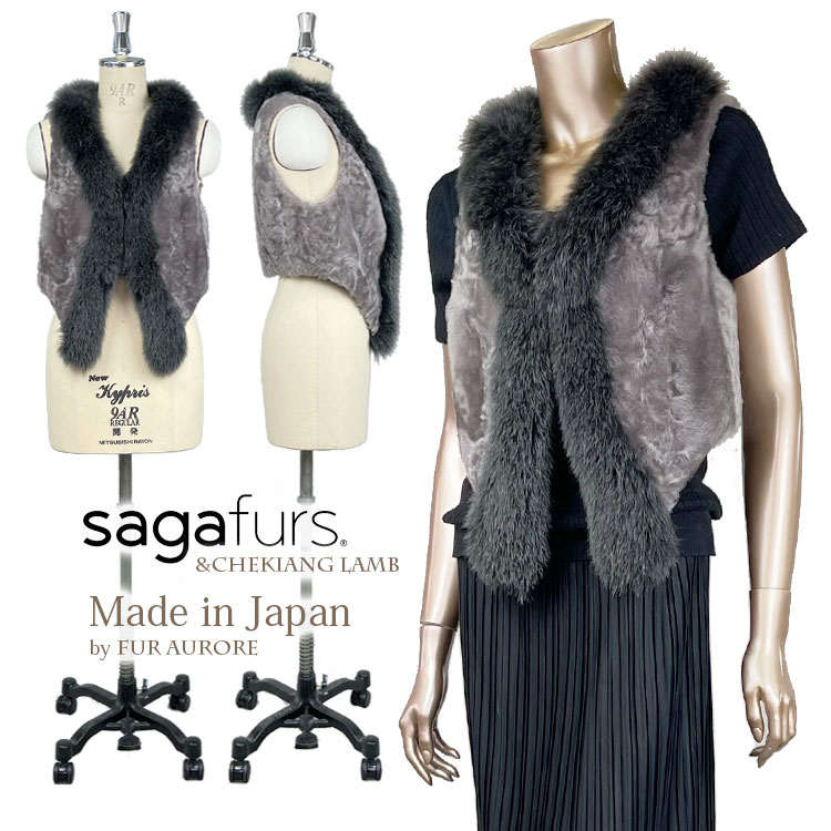 SAGAフォックストリミング チェキアンラムシェアードベスト グレー