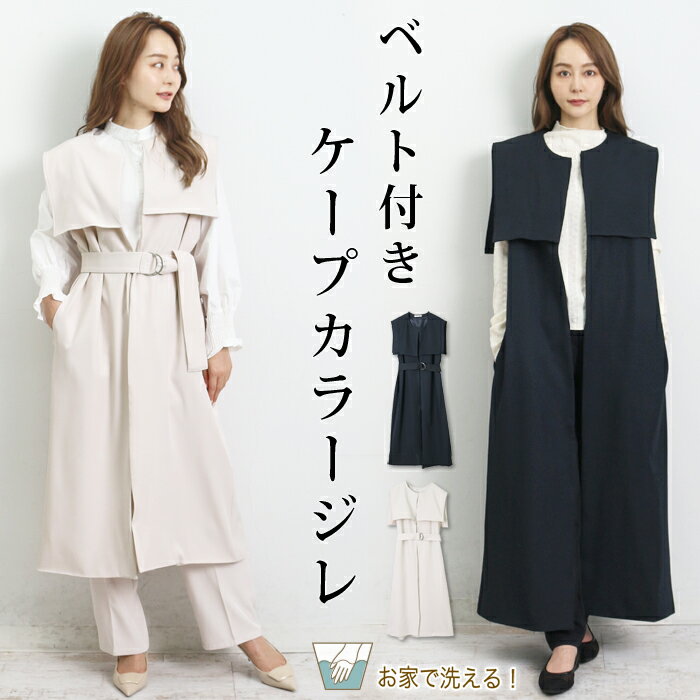 マラソンセール●送料無料 選べる着丈 ジレ ロング ベスト 羽織●レディース トップス ケープ付 トールサイズ シワ防止 レイヤード ライトアウター アウター 前開き 羽織 薄手 ノーカラー 大人 上品 カジュアル オフィス アイボリー ネイビー[8778]