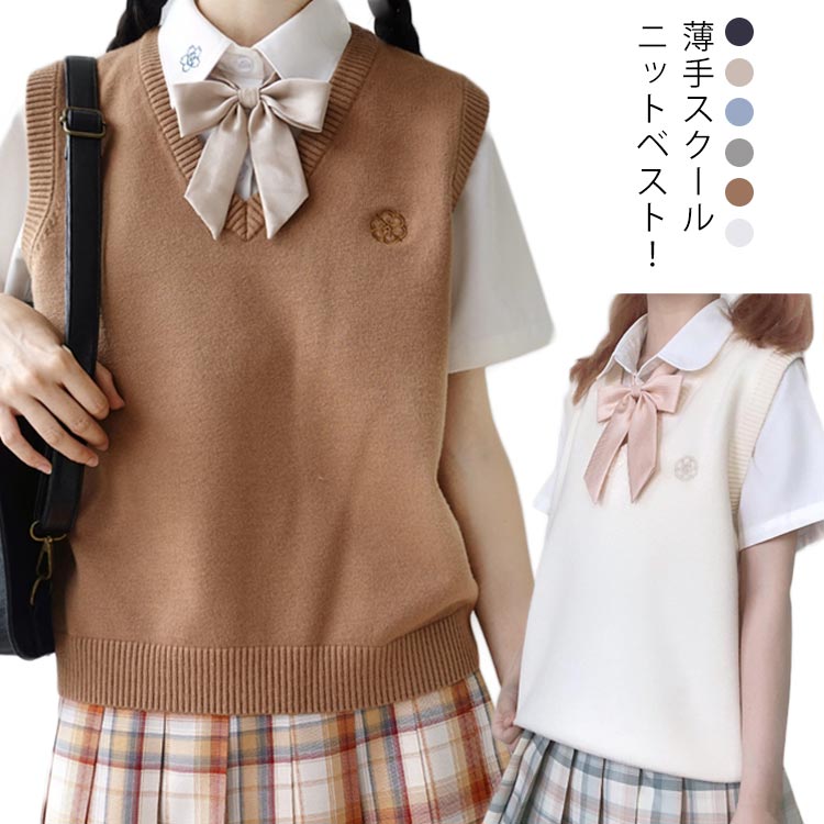 スクールベスト 制服 ベスト 夏用 薄手 ニットベスト Vネック 定番 レディース 制服ベスト スクール ベスト ノースリーブ スクールセーター ロゴ 刺繡 無地 シンプル 女子高生 通学 高校生 中学生 学生服 JK コスプレ かわいい 春用 夏用 夏服 オールシーズン 送料無料