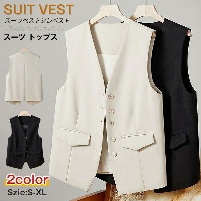 スーツ ベスト レディース トップス ノースリーブ 春 夏 秋 Vネック ショート ノーカラー 前開き 羽織り 重ね着 ベストジレ 着回し サマー テーラード ジャケット カジュアル 体型カバー 通勤 仕事 OL 結婚式 制服 事務服