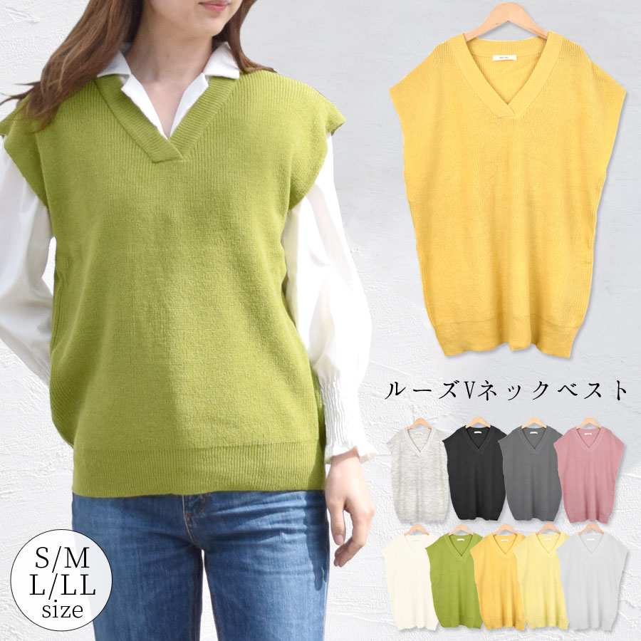 ニットベスト レディース チョッキ トップス Vネック 薄手 ゆったり プルオーバー ベスト ジレー セーター 無地 重ね着