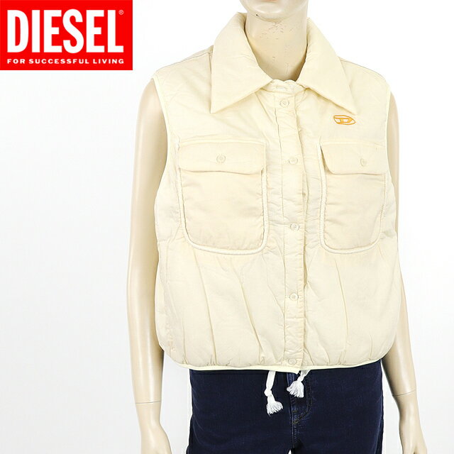 ディーゼル(DIESEL)レディース 訳あり ベスト ベージュ系 中綿入り 胸にロゴ刺繍 イタリア製 (サイズ/L)*bl0078