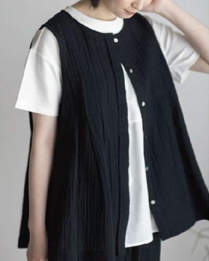 ノースオブジェクト north object リラシク LILASIC ハイツイスト コットン Wガーゼ ジレ ライトグレー チャコール M トップス 綿 ふんわり ナチュラル フレアシルエット 羽織 ベスト おしゃれ かわいい 春 夏 カジュアル