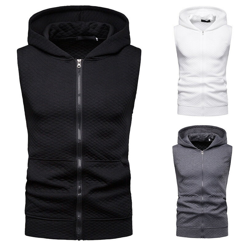 ノースリーブ パーカー メンズ 無地 パーカーベスト フード付き 無地 ジップアップパーカー
