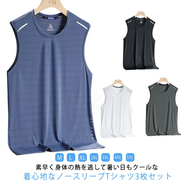 3枚セット 接触冷感 タンクトップ メンズ ノースリーブ Tシャツ 速乾 筋トレ 薄手 夏 メッシュ 吸汗速乾 涼しい 袖なしスポーツウェア 運動着 ジム フィットネス インナー 大きいサイズ 夏服 ランニング トレーニングウェア 筋トレ 運動会 体育祭 作業着