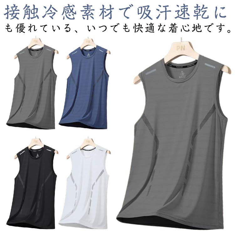Tシャツ タンクトップ ノースリーブ メンズ カットソー ビッグサイズ 冷感 涼しい 清涼感 無地 トップス カジュアル 柔らか 夏 薄手 袖なし 吸汗透湿 ストレッチ 大きいサイ 速乾性 軽量 スポーツ ウェア ジョギング ゴルフ サッカー 部屋着 肌着