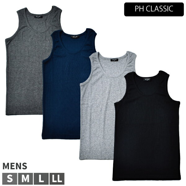 タンクトップ メンズ 紳士 PH CLASSIC パーティハウスクラシック ランニング ノースリーブ タンク 無地 テレコ リブ シンプル ベーシック 定番 インナー スポーツ ジム S-LL 1点までメール便可
