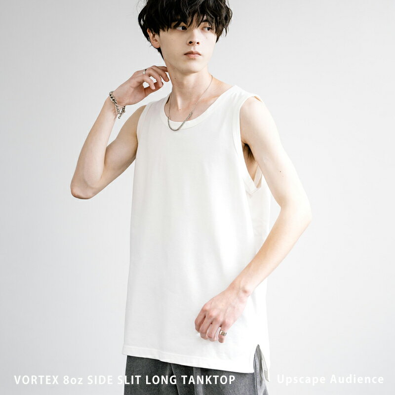 タンクトップ ロング丈 ノースリーブ メンズ レディース VORTEX 8オンス サイドスリット レイヤード 重ね着 日本製 国産 ルーズ ビッグシルエット オーバーサイズ 無地 シンプル カジュアル きれいめ Upscape Audience アップスケープオーディエンス AUD6527 13497