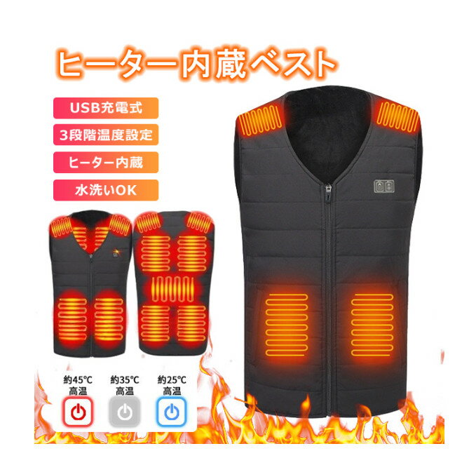 送料無料 電熱ベスト ヒーターベスト 9サイズ対応 発熱ベスト USB 3段階 速暖 インナーベスト 冬対策 防寒着 男女兼用 洗える プレゼント 水洗い 防寒 軽量 バイク アウトドア 通勤通学 屋外作業 釣り 電熱ジャケット 電熱ウェア 防寒インナー 大きいサイズ