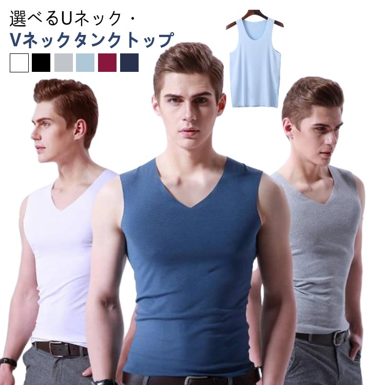 メンズ インナーシャツ 接触冷感 インナーシャツ アンダーウエア ノースリーブ 吸汗速乾 【6枚セット】選べるUネック・Vネックタンクトップ ストレッチ 肌着 涼しい タンクトップ 薄手 トップス 夏用 袖なし ビジネス スポーツ カジュアル レイヤード シームレス
