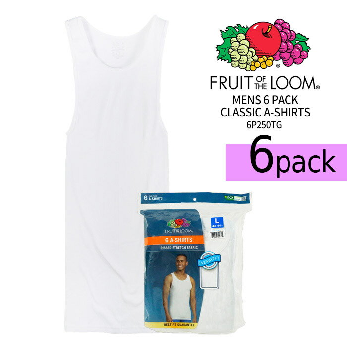 フルーツオブザルーム タンクトップ 6枚組み Fruit of the Loom MENS 6 PACK CLASSIC A-SHIRTS 6P250TG White 白 ホワイト Aシャツ 無地T パック 6枚セット 下着 アンダーウェア インナー メンズ 男性 sale セール