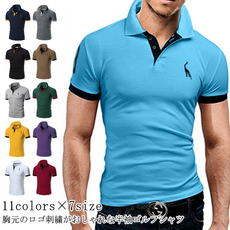 メンズ ゴルフシャツ ゴルフシャツ 半袖 半袖 父の日ギフト 半袖 配色 スポーツウェア ポロシャツ 大きいサイズ ゴルフシャツ 男性用 刺繍