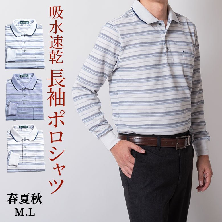 シニア ポロシャツ 長袖 メンズ 脇部分デオドラント 鹿の子 ボーダー ストレッチ ゴルフ 春夏 秋 吸水速乾 旅行 父の日 贈り物 11-2704 送料無料【沖縄への配送不可】父の日 ギフト プレゼント