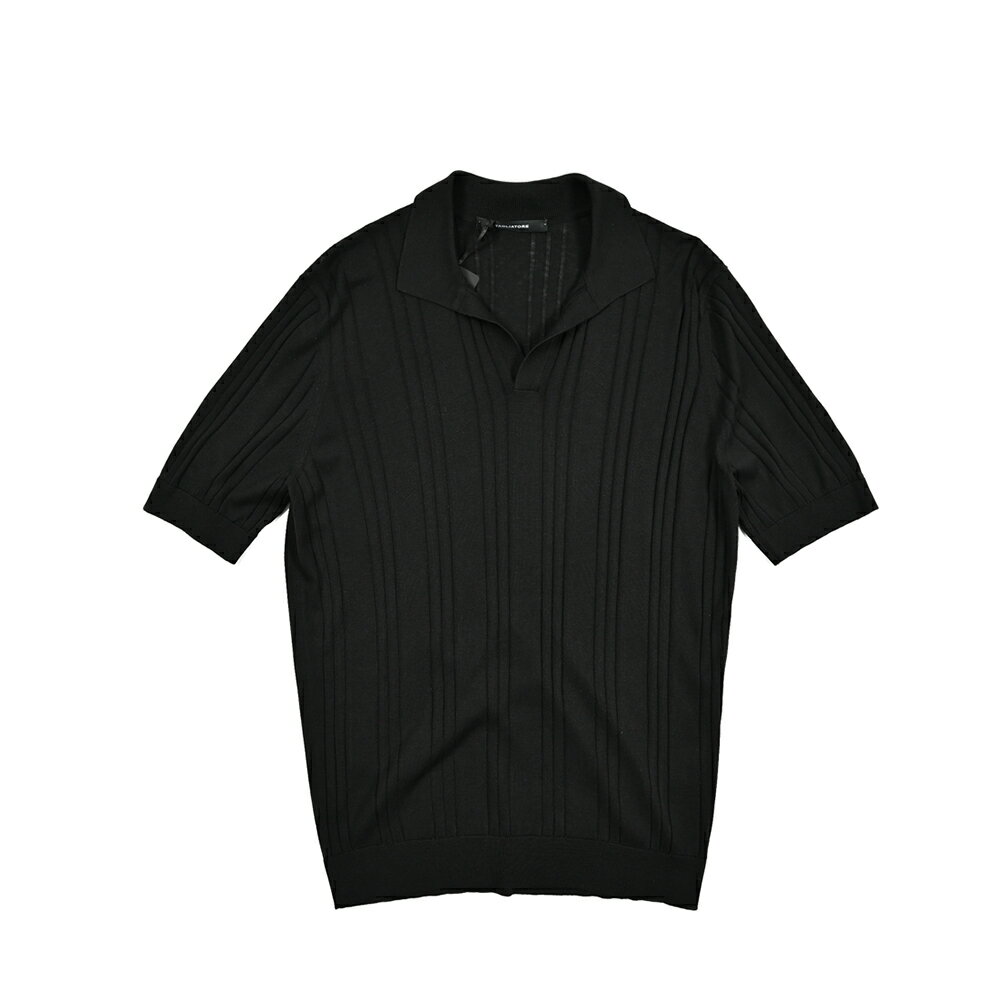 【半額以下】 タリアトーレ TAGLIATORE 【2025年 春夏新作】 スキッパー 半袖ニットポロシャツ ハイゲージ 春夏 メンズ シルク 100% リブ ブラック イタリア ブランド MADE IN ITALY