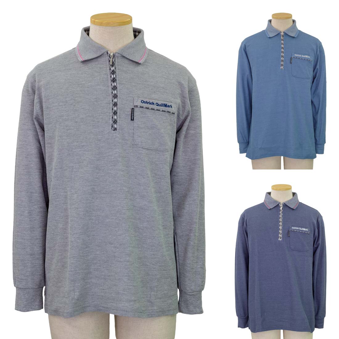 通年 長袖 ハーフジップ ポロシャツ 紳士 シニアファッション 60代 70代 80代 90代 敬老の日 高齢者 おしゃれ 普段着 メンズ シニア 男性 紳士服 おじいちゃん お年寄り 介護 施設 デイサービス 刺繍 名前 名入れ 父の日