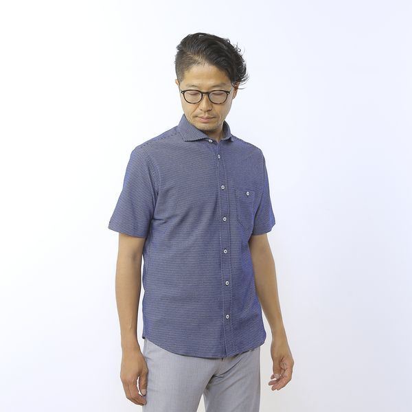 クールマックスハニカムボーダーホリゾンタルカラー半袖カットシャツ/メンズメルローズ(MEN'S MELROSE)