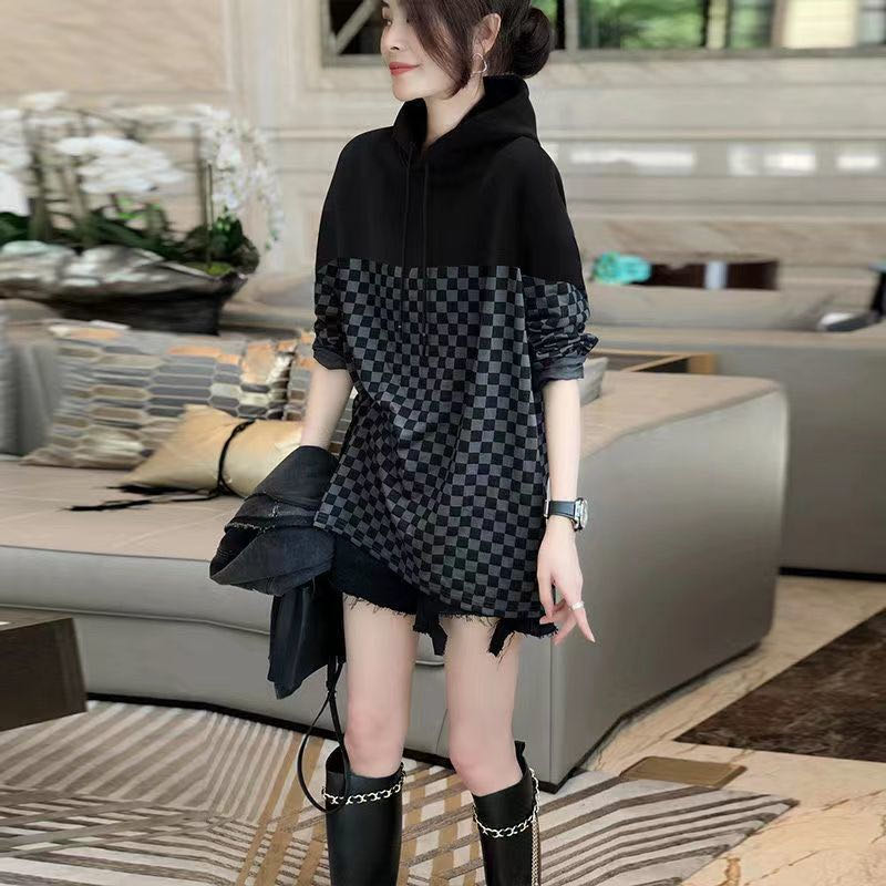 トレーナー レディース 大きいサイズ フード付き 春秋 秋服 春服 長袖 チェック柄 薄手 トップス ゆったり 可愛い カジュアル LUEA316(M-4XL)
