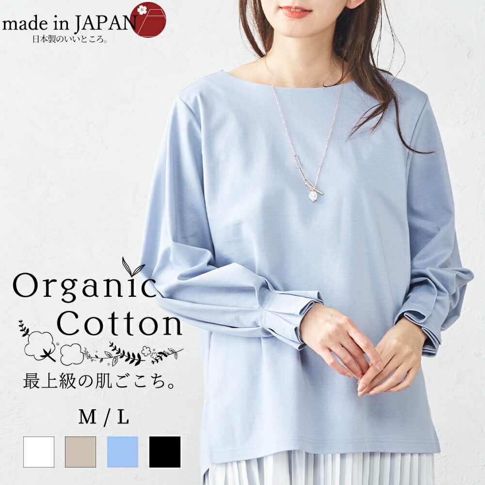 【スーパーセール60%OFF】日本製 オーガニックコットン タックスリーブ 高見え 前後差 裾ラウンド ポンチ トレーナー プルオーバー tシャツ 長袖 綿100% 30代 40代 50代 60代 カジュアル 大人可愛い