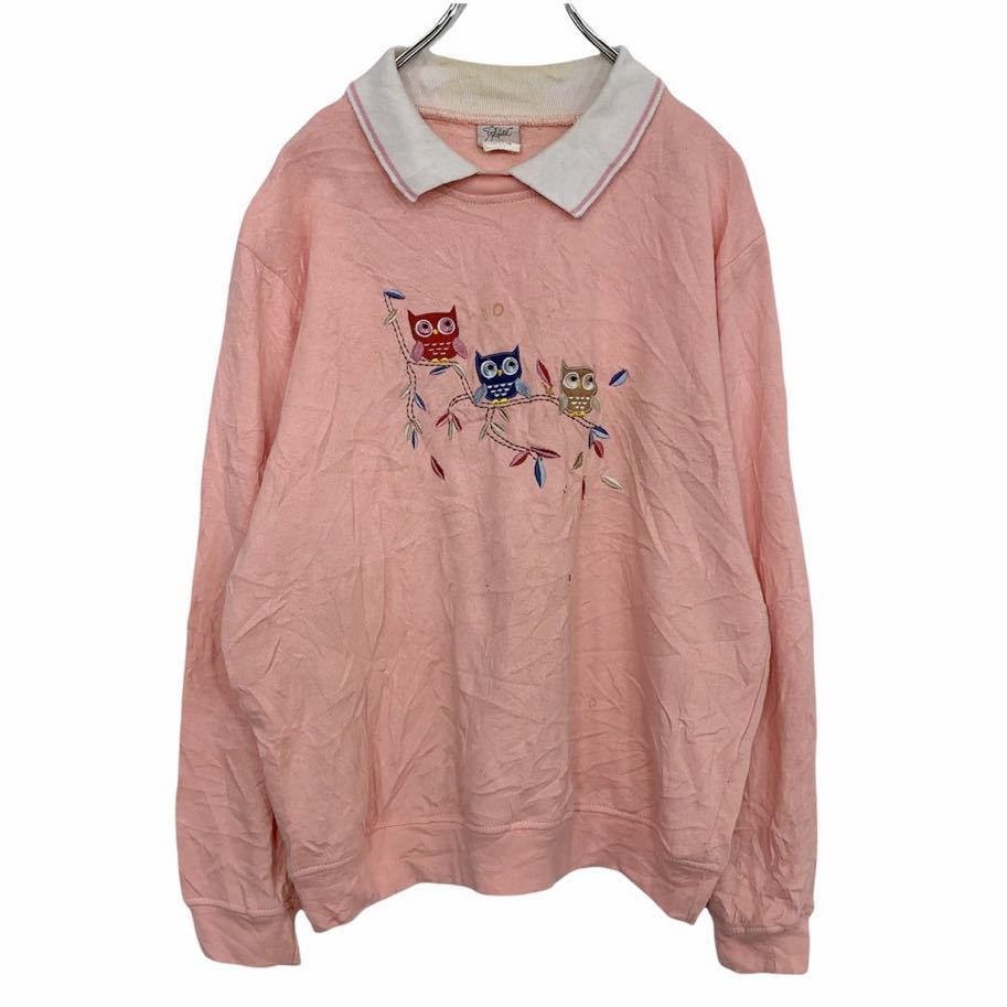 【中古】【古着】 レイヤードネック スウェットトレーナー レディース L ピンク フクロウ 刺繍 古着卸 アメリカ仕入 t2111-3662