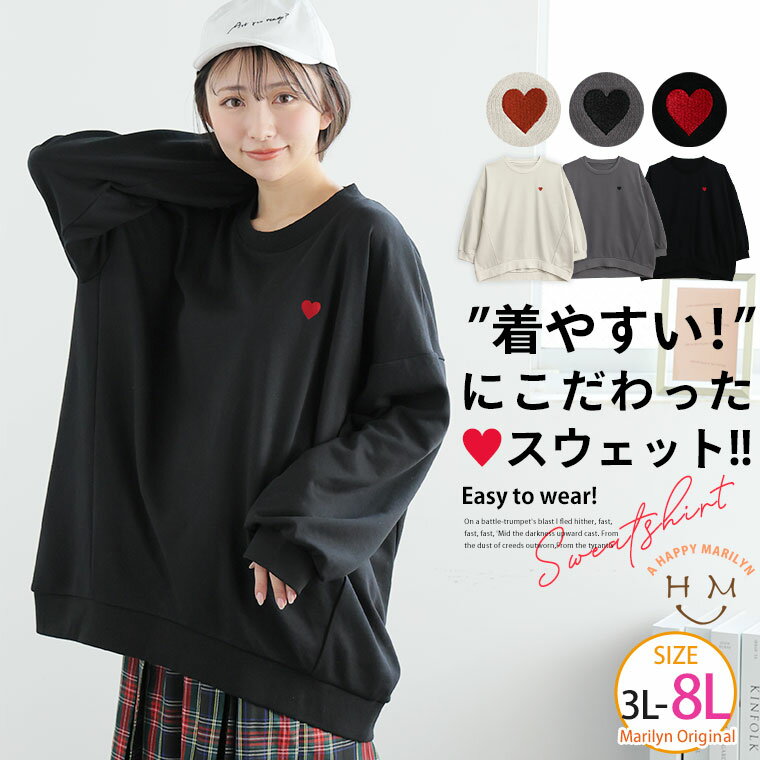 【限定!全品P5倍1/26 13:59まで】 大きいサイズ レディース トップス | ハート刺繍 裏毛 スウェット _ トップス トレーナー スウェット 3L 4L 5L 6L 7L 8L 長袖 春 春物 春服 ぽっちゃり ゆったり プラスサイズ 裏毛 ビッグシルエット パーカー かわいい おしゃれ [473379]