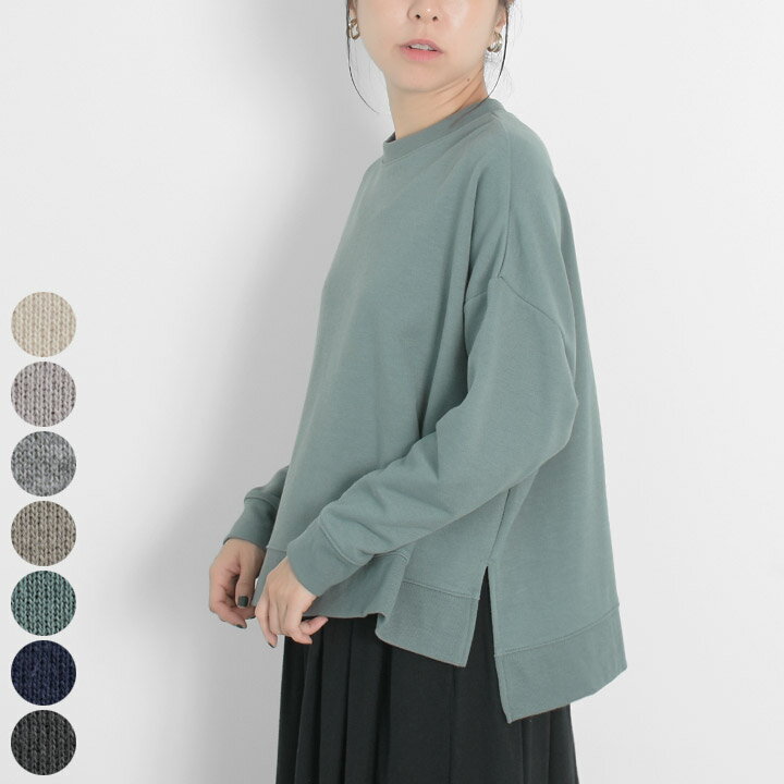 【福袋対象B】 スウェット トレーナー ワイド レディース プルオーバー トップス カットソー Tシャツ 長袖 裏毛 裏パイル 綿混 コットン 大きいサイズ ゆったり 体型カバー ドロップショルダー 無地 大人 可愛い ナチュラル カジュアル 服 [M便 不可]