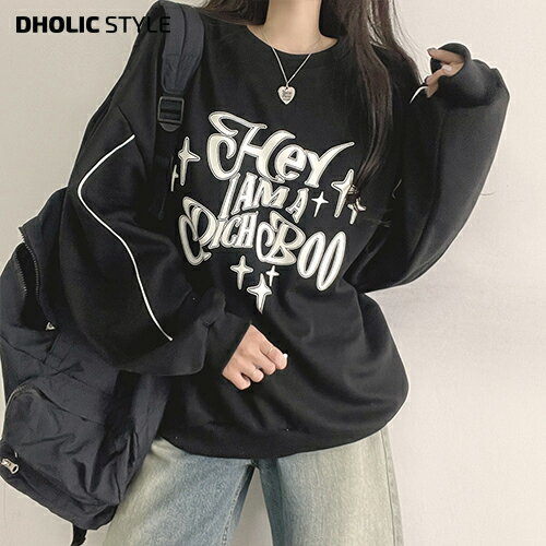 パイピングラインレタリングスウェット・p638243 レディース 【tops】トップス 長袖 ラウンドネック スウェット レタリング 英語 ルーズ ゆったり カジュアル お出かけ 春 秋 冬 STYLE 韓国ファッション
