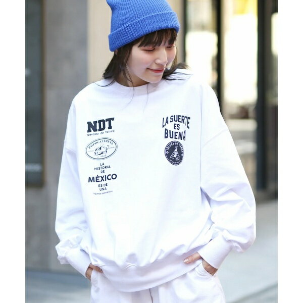 [1/31 23:59迄クーポンで10%OFF]スウェット レディース トップス トレーナー 長袖 裏毛 カットソー プリント ロゴ 綿混 ドロップショルダー プルオーバー お尻が隠れる ゆるっと 春 秋 冬 オシャレウォーカー【メール便不可】【30】