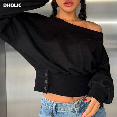 tops レディース 韓国ファッション トップス スウェット 長袖 ボートネック オフショルダー 綿 コットン 伸びる プチプラ セクシー シンプル ガーリー フェミニン カジュアル 秋 冬 bada d62J02