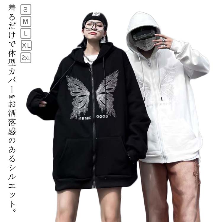 ジップアップ 地雷系 ゆったり おしゃれ 病みかわいい 長袖 アウター パーカーレディース 男女兼用 サブカル系 トレーナー オーバーサイズ ジップアップ フード付き 日常着 お出掛け 原宿系 渋谷系 ストリート系 ギャル服 秋