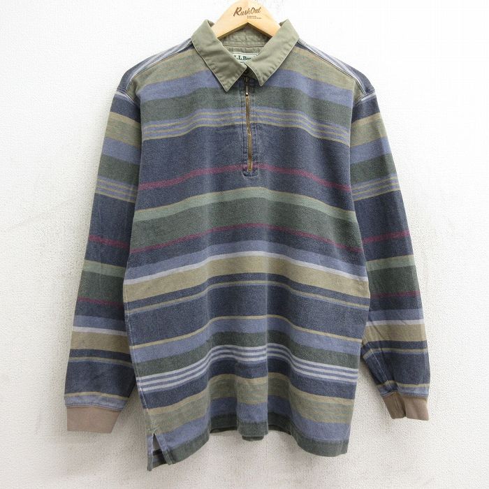 【中古】古着 エルエルビーン LLBEAN 長袖 ハーフジップシャツ レディース 90年代 90s コットン 濃紺他 ネイビー ボーダー 【spe】 中古 ブラウス トップス | 春夏 春物 春服 秋冬 秋物 秋服 カジュアル レディースファッション おしゃれ かわいい