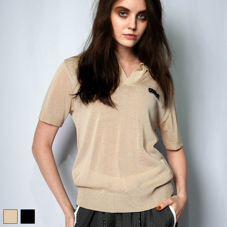 《 COOLA ロゴ ポロ TOPS ベージュ 【 送料無料 】 》 トップス サマーニット 透け感 薄手 半袖 ティーシャツ ワッペン 春 夏 秋 冬 オールシーズン 新作 個性的 シンプル カジュアル キレイ目 スポーティ ストリート モード ファッション レディース レディースファッション