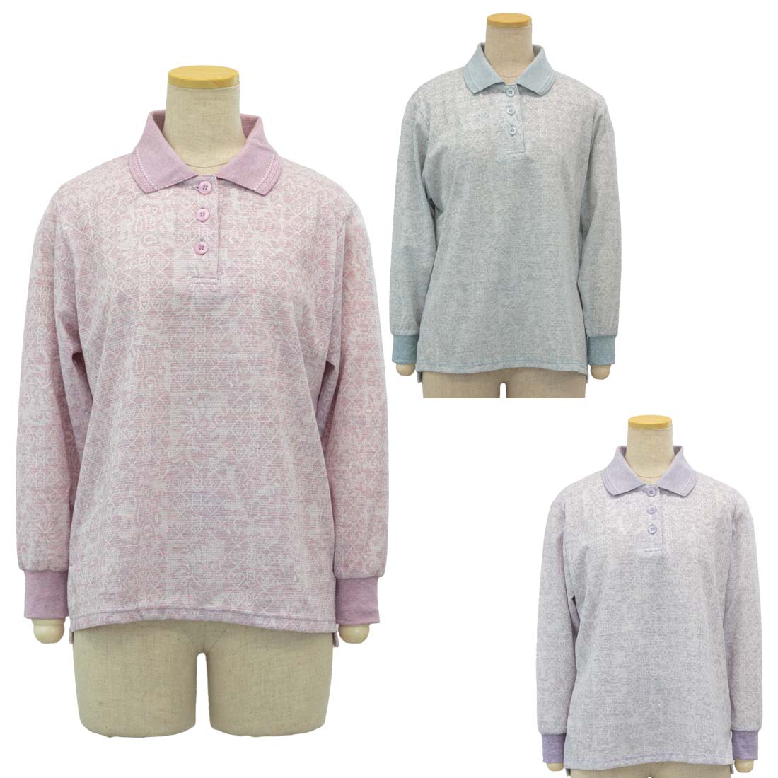 婦人 レディース シニア 長袖 レインボー ジャガード ポロシャツ LC 小さいサイズ ●トップス 敬老の日 ギフト 高齢者 70代 80代 老人 高齢者 介護向け 90代 施設 介護 おばあちゃん お年寄り 高齢者 春夏 母の日 シニアファッション