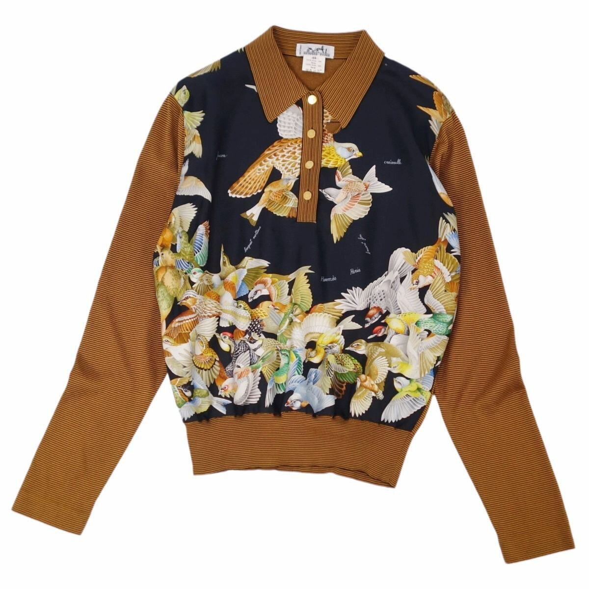 【美品】Vintage エルメス HERMES ニット シャツ ブラウス ポロシャツ ロングスリーブ 長袖 セリエボタン シルク切替 トップス レディース 40(M相当) マルチカラー【中古】