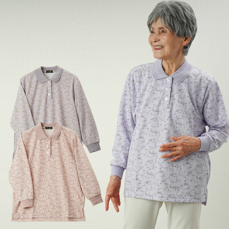 シニアファッション レディース 80代 70代 60代 90代 春夏 春の小花柄プリント 長袖ポロシャツ おばあちゃん 服 誕生日 プレゼント 婦人服 女性 ハイミセス 祖母 お年寄り 老人 高齢者